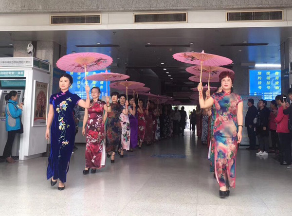 9月30日是院日,又是医院的“文化节”。隆重的升国旗仪式一结束,医院工会旗袍协会的姐妹们按捺不住激动的心情,在门诊大厅走起“旗袍秀”,她们神采飞扬,笑颜如花,随着悠美的乐曲展示国粹旗袍的风采;老中青相结合的小合唱团队,一曲《今天是你的生日我的中国》将这次“快闪”拉向#个高潮,“愿你月儿常圆,儿女永远欢乐”回响在门诊大厅;读书协会的诗朗诵《向国旗敬礼》,激情歌颂了国旗——五星红旗,五星的光芒凝聚人民的自信骄傲,见证了祖国繁荣昌盛;最后大合唱,靳宏星副所长与所有人一起合唱《歌唱组国》将“快闪”推向又一个高潮。医务人员的演唱打动了在场的患者和家属,他们纷纷停住脚步拿起手机拍照录像,并跟着高唱“五星红旗迎风飘扬,革命歌声多么响亮......”