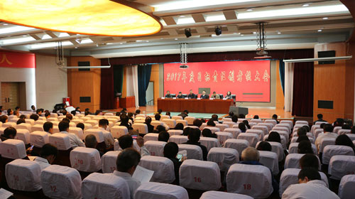 2018年1月5日,省卫生计生委#考核组组长郭晋刚、副组长李瑞兵带领考核组成员一行8人对省肿瘤医院进行2017年度目标责任制考核。院所全体领导、各科室负责人、在聘正高人员及各级人大、政协委员共124人参会。会议由副院长刘瑞云主持。