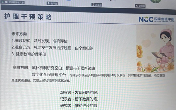 研讨会上,主管医生闫旭丽和研究护士解婧率先对相关患者病情进行全面细致的汇报。从皮疹发生发展过程、已实施的护理措施,到当前面临的临床护理难点,均逐一清晰呈现,为后续多学科专家针对性研讨提供了扎实的临床依据。