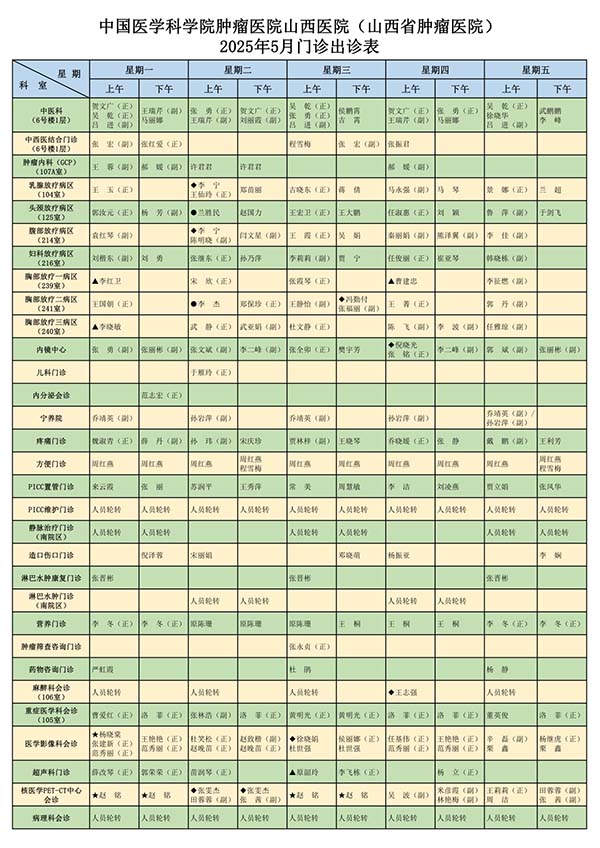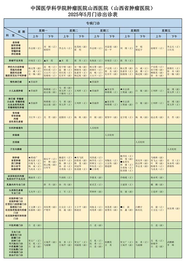 2025年5月门诊医师出诊表