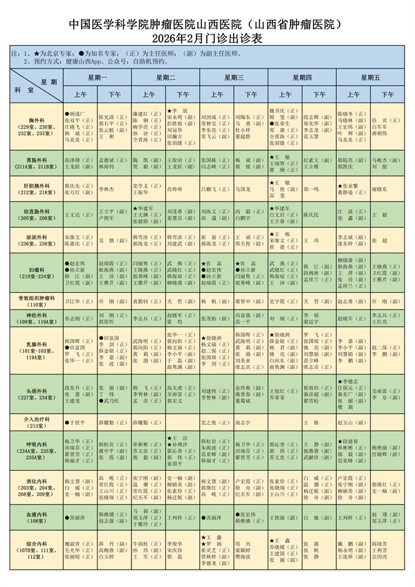 2026年2月门诊医师出诊表