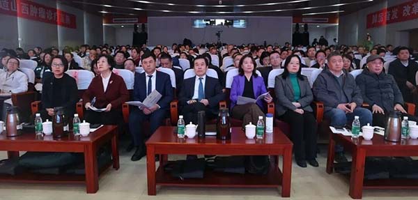 ★医院年终考核大会特邀中国科学院院士、国家癌症中心主任、中国医学科学院肿瘤医院院长、中国医学科学院肿瘤医院山西医院管委会主任赫捷莅临指导。赫捷院士从国家癌症防治战略高度,与全院职工共话发展成就、共绘奋进蓝图,为医院高质量发展及区域肿瘤防治事业提质增效注入强劲动力。