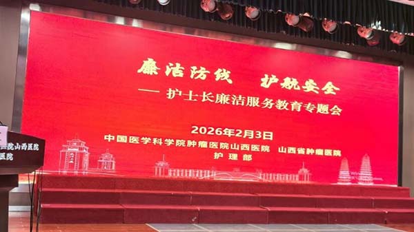 为持续强化护理管理队伍廉洁自律意识,规范临床服务行为,夯实党风廉政与医德医风建设根基,近日,中国医学科学院肿瘤医院山西医院(山西省肿瘤医院)护理部组织召开护士长廉洁服务专题教育会。会议由护理部副主任牛巧红(主持工作)主持,全院护士长参会,通过专题学习、案例剖析、集体承诺等形式,拧紧廉洁“安全阀”,为护理事业高质量发展筑牢纪律保障。