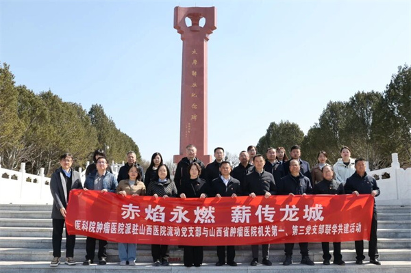 为缅怀革命先烈、淬炼医者初心使命,深入学习贯彻2026年全国两会精神,以高质量党建引领卫生健康事业高质量发展,3月20日,中国医学科学院肿瘤医院派驻山西医院流动党支部与山西省肿瘤医院机关一、三党支部,在太原解放纪念馆联合开展“赤焰永燃、薪传龙城”联学共建主题党日活动。中国医学科学院肿瘤医院山西医院总院长、派驻山西医院流动党支部书记王洁,医院党委书记马晋峰全程参与活动。作为国家肿瘤区域医疗中心建设主体单位,此次活动将红色教育与医疗履职深度融合,切实把红色精神转化为推动山西肿瘤防治事业发展、守护三晋百姓健康的实际行动。