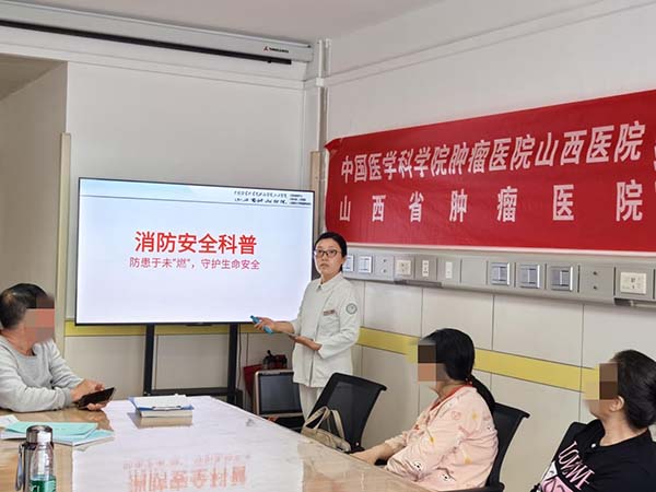 在全国第34个消防日来临之际,为深入贯彻“预防为主,生命至上”的安全理念,落实安全生产相关工作要求,进一步强化医患消防安全意识与应急处置能力,筑牢医院安全防线,11月13日,中国医学科学院肿瘤医院山西医院(山西省肿瘤医院)乳腺外科以消防日为契机,举办“预防为主,生命至上”主题消防安全科普专项活动,病区患者、家属及科室医护人员踊跃参与,共同学习消防安全知识。