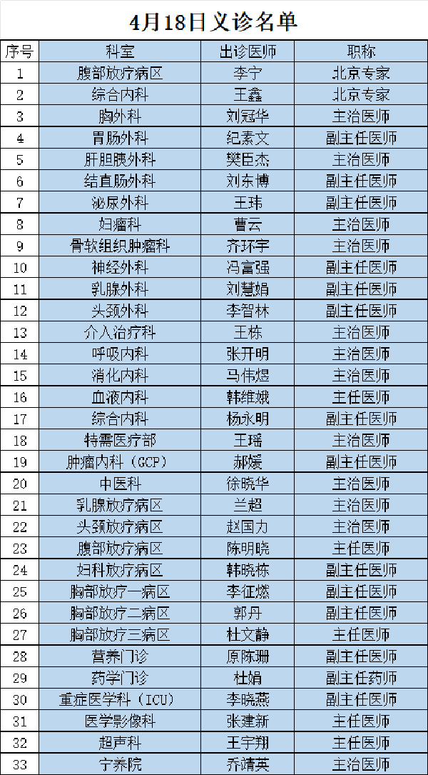 本次义诊将集结31个临床及医技科室的医师团队,为大家提供免挂号费健康咨询服务,服务涵盖肿瘤预防、筛查建议、诊疗咨询、康复指导、营养科普等癌症全周期健康指导。
