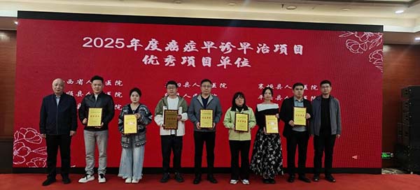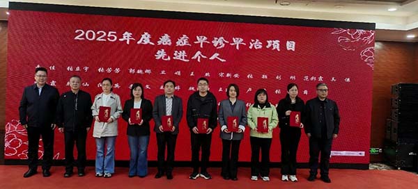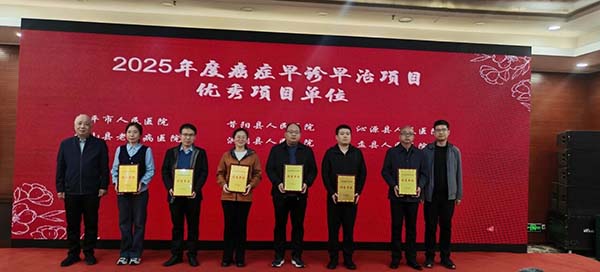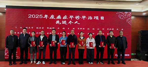 仪式现场同步举行2025年度全省癌症早诊早治项目表彰活动,对20家“省级优秀项目单位”、42名“省级先进工作者”予以表彰颁奖,以先进典型引领带动全省各级医疗机构持续提升癌症防治服务能力与工作质效。胡斌星主任、白文启副院长等领导为获奖代表颁奖。