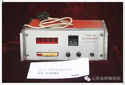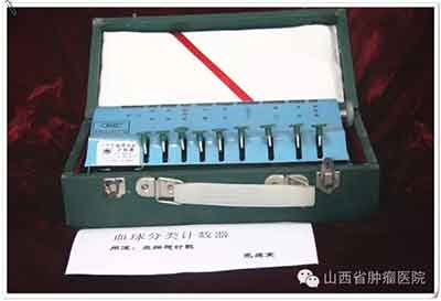 在院史展览馆,有三件七十年代的实验仪器:血球分类计数器、数字式精密酸度计和TN型托盘扭力天平。在工作人员的精心维护之下,它们看起来还光洁如新。作为基础的实验仪器,它们在七十年代发挥了重要作用,见证了多少肿瘤医院实验人员的科研经历,没人知道!随着科技进步,现代化设备的引进,它们完成了使命或者已退出历史舞台,但是留在它们身上的历史痕迹,被保留了下来。