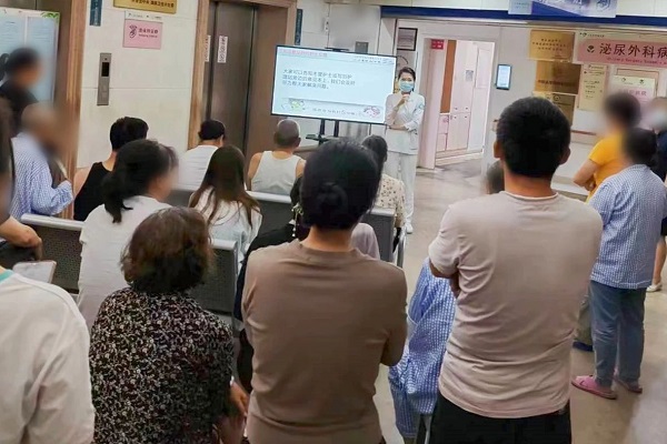 泌尿外科护士长杨振亚利用周末休息时间,参与公休座谈会,强调住院安全,讲解疾病相关知识,耐心为患者答疑解惑。