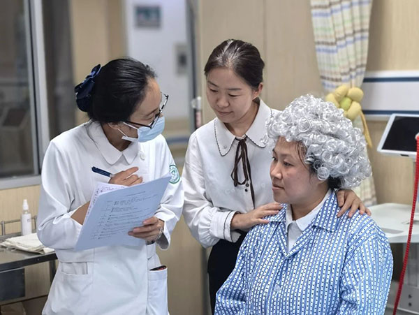第三期活动学习了认知障碍、老年瘙痒症的相关知识及《认知障碍的评估量表》。开展情景模拟工作坊,范莹莹护士扮演有认知障碍的患者,白俊丽护士扮演家属,吴星星护士演示如何与患者沟通并进行评估。操作组演示了预防压疮和皮肤护理的操作。