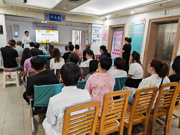 首先,肝胆胰胃外科病区护士长苏润平以“健康中国,营养先行”的主题开启了本次健康教育的活动,以少油少盐,控糖限酒为重点内容,让患者及家属充分了解了本次健康教育活动的目的和重要性,从而提高膳食质量,降低肥胖和慢性病的发生发展。