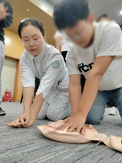 放射治疗科护理团队赵成昱、张彩,为大家详细讲解了心肺复苏的基本技能,并带领现场的老师、学生分组进行实际演练。同学们积极参与,在实践中逐渐掌握了心肺复苏的要领,提高了应对突发状况的能力。