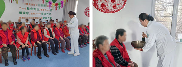中医护理学组则充分发挥中医传统养生的优势,为老人们带来了丰富的中医养生体验。学组的老师们带领老人们一起做中医养生拍打操,一边示范标准的动作,一边详细讲解拍打过程中涉及的穴位位置和养生功效。老人们跟着老师的节奏,认真地做着每一个动作,在欢快的氛围中感受着传统中医养生的魅力。