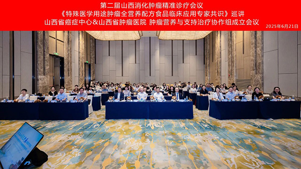 2025 年 6 月 20 日至 21 日,由山西省抗癌协会消化肿瘤精准诊疗专委会主办、中国医学科学院肿瘤医院山西医院(山西省肿瘤医院)消化内科承办的 “第二届山西消化肿瘤精准诊疗会议暨《特殊医学用途肿瘤全营养配方食品临床应用专家共识》巡讲”在太原隆重召开。会议汇聚省内外肿瘤领域知名专家、学者及临床医师,同期成立山西省癌症中心消化肿瘤临床与转化研究协作组、肿瘤营养与支持治疗协作组,构建起“诊疗-科研-营养”三位一体的肿瘤防治体系。