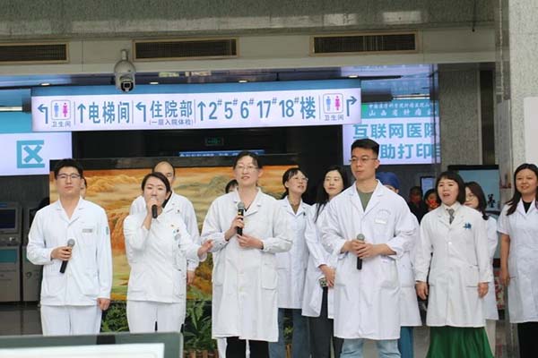 为传承五四精神,展现青春风采,4月30日上午10:30,山西省肿瘤医院团委在医院门诊大厅举办了“唱‘享’青春,同唱一首歌”快闪活动。改编歌曲《世界赠与我的——肿瘤医院版》,带动着现场70余位青年职工的心,同步视频展现了医院党委对青年职工的寄语及全院各党支部职工的风貌!