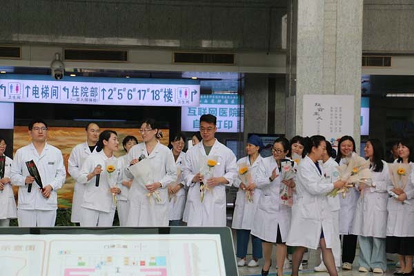 活动现场,医院青年职工、医护人员化身“歌者”,手持鲜花,以饱满的热情、动人的歌声,唱响主旋律 。歌声回荡在门诊大厅,传递出积极向上的青春力量,展现了医护人员的活力与担当,也为患者及家属带来温暖与慰藉,营造出充满人文关怀的就医氛围。此次活动不仅丰富了医院文化生活,更凝聚了青年力量,彰显了医院的青春风采与人文精神。
