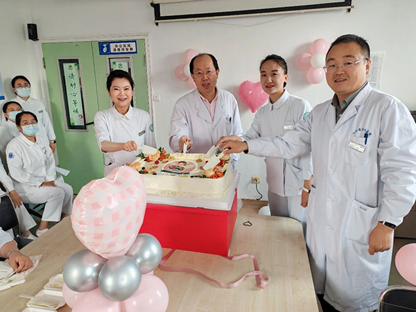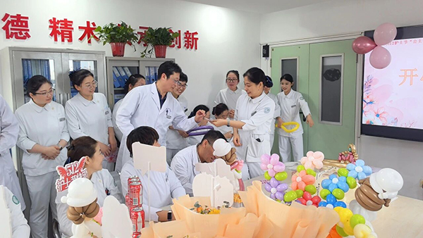 当香甜的蛋糕推入场内,摇曳的烛光映亮了泌尿外科护士们疲惫却幸福的脸庞。科室以一场温馨的茶话会,向坚守岗位的护理人员致以节日问候。“你们是病房里的‘提灯人’,用耐心和专业照亮患者的康复之路。” 科室主任们在致辞中肯定了护理团队在患者照护、健康管理等方面的辛勤付出。活动现场,医护人员共同切开节日蛋糕,互道祝福,在轻松的交流中重温职业初心。简单而温暖的仪式,让护士们感受到“家人般”的关怀,也凝聚了团队携手前行的力量。