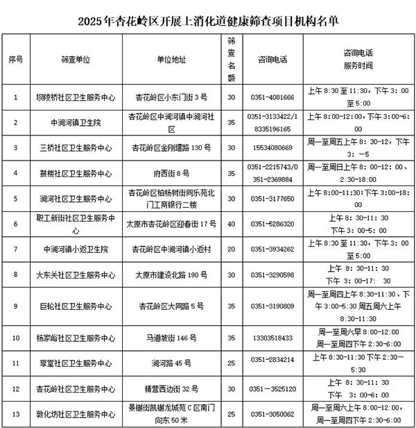 上消化道筛查社区地址及联系方式