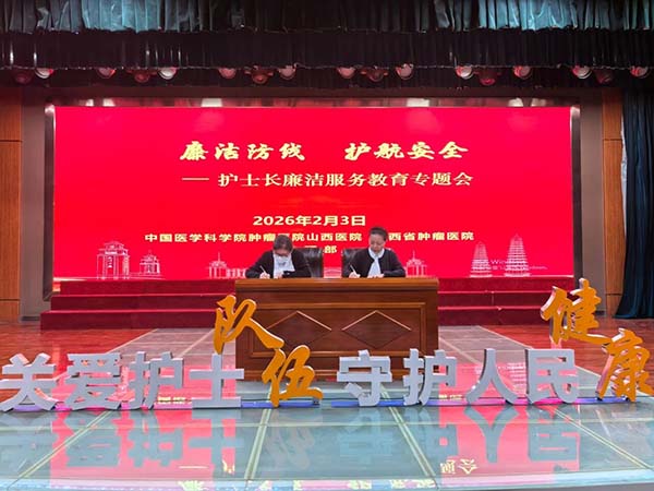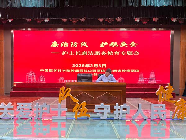 为持续强化护理管理队伍廉洁自律意识,规范临床服务行为,夯实党风廉政与医德医风建设根基,近日,中国医学科学院肿瘤医院山西医院(山西省肿瘤医院)护理部组织召开护士长廉洁服务专题教育会。会议由护理部副主任牛巧红(主持工作)主持,全院护士长参会,通过专题学习、案例剖析、集体承诺等形式,拧紧廉洁“安全阀”,为护理事业高质量发展筑牢纪律保障。