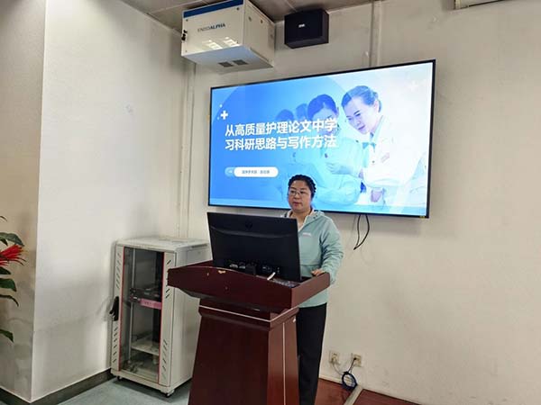 在科研专题授课环节,张志焕老师以《从高质量护理论文中学习科研思路与写作方法》为题开展培训。授课紧扣手术室护理临床实际,围绕论文选题、研究设计、数据整理、结构搭建、语言规范、投稿技巧等核心内容,结合经典案例剖析、现场互动答疑,深入浅出讲解护理科研思路与论文写作方法,精准破解护理人员科研写作痛点难点,有效提升参训人员科研思维与实践能力。
