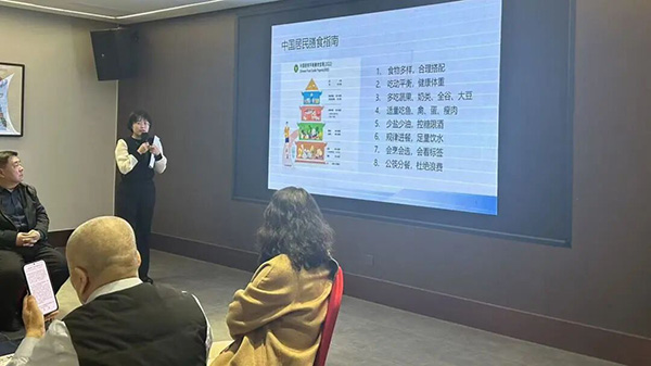 主旨分享环节,山西省肿瘤医院临床营养科杨倩博士以《科学膳食,健康管理:食养指南解读》为题,系统解读了国家糖尿病、高血压、高脂血症、高尿酸血症等慢性病食养指南核心内容,结合山西饮食特色,从食材功效分析、科学配伍、烹饪要点等方面,讲解了如何将山药、茯苓、山楂等药食同源食材融入日常菜品研发,为餐饮企业健康菜品打造提供了专业理论依据和实操指导。商会企业代表则结合经营实践,分享了健康餐饮转型中的探索与经验,介绍了会员企业在低盐低糖少油菜品改造、养生套餐设计等方面的具体做法,为医疗专业与餐饮实践的融合提供了市场视角。