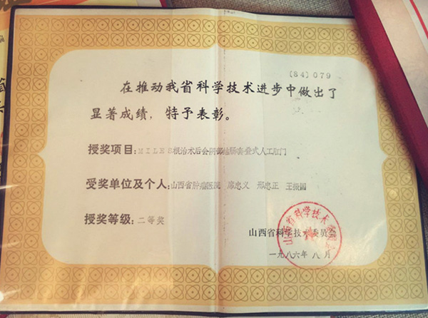 1982年首创“腹壁结肠造瘘移植于会阴部肛门直肠重建”#。1984年,首创了“直肠癌#术(Miles)后会阴部结肠套叠式人工肛门重建”新术式,突破了国际上沿用了80余年的(Miles)麦尔斯直肠癌#术后腹壁造瘘排便的老办法,使患者仍在原位排便,提高了生存质量,该项成果获山西省科技进步应用二等奖。他先后为全国28个省市3000多名患者施行手术,术后3-6个月以上患者排便功能优良者达95%以上。