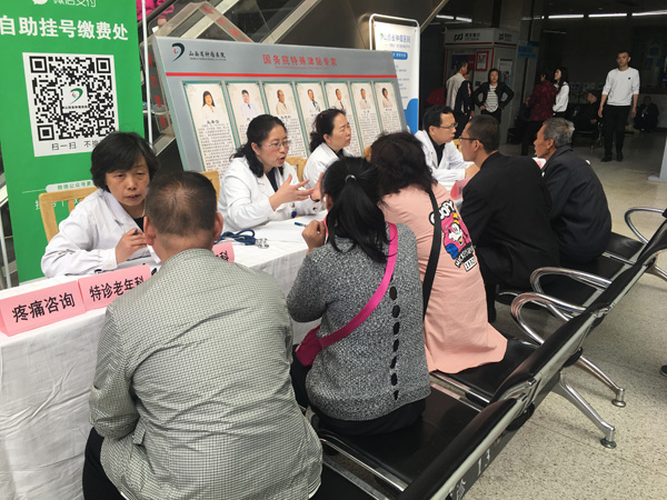 活动同时在门诊大厅西侧,有消化一病区、胸外三病区、呼吸一病区、血液内科、生物治疗科和特诊老年科六个科室的专家组成义诊团队,进行义诊、接受咨询,接诊或答疑