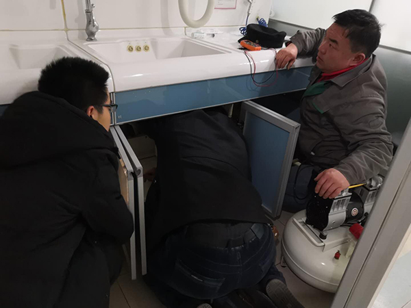 内镜清洗工作站电路发生短路,告知设备科后不到十五分钟,维修人员到位,并开始在很狭窄的空间排查检修,为他们的积极态度点赞!