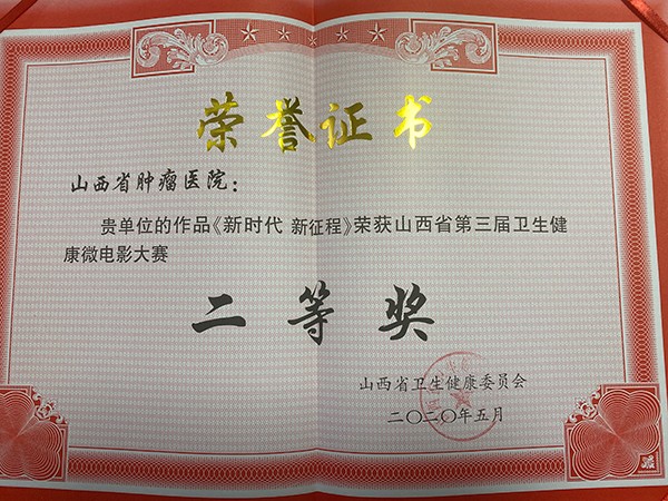2020年11月27日省肿瘤医院作品《新时代,新征程,全面创建国内一流水平肿瘤医院》《我和我的祖国》在山西省第三届卫生健康微电影大赛中分别荣膺二等奖和#奖的好成绩。本次评选从全省众多医院参赛作品中选出。我院作品从众多#作品中脱颖而出,代表着对我院宣传工作给予了高度的肯定。