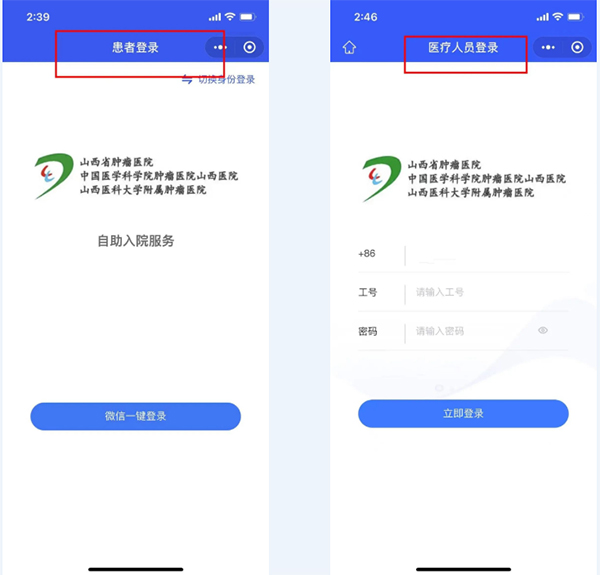 1 医患双方微信搜索“自助入院服务”小程序登录,医生填写工号和初始密码
